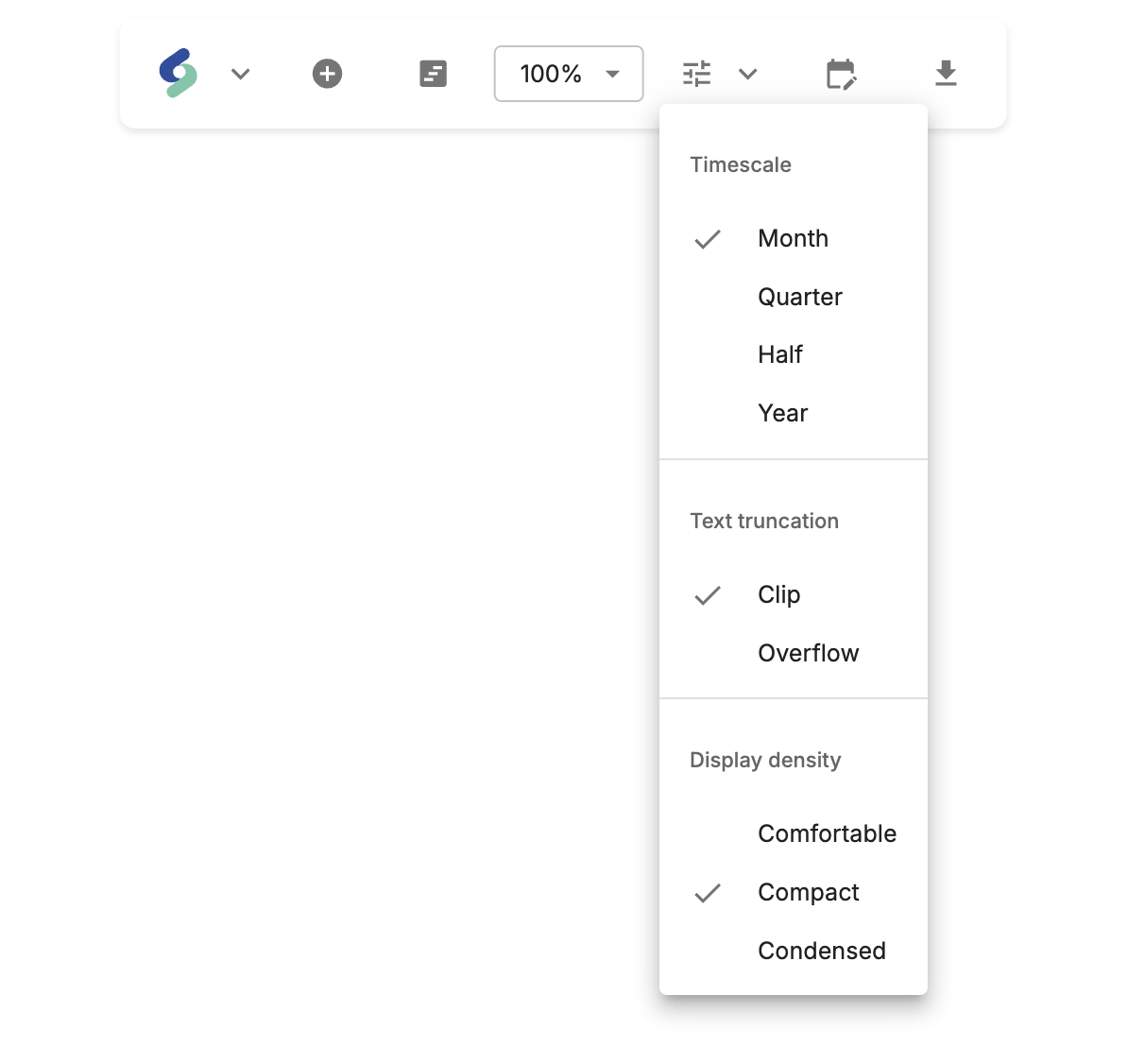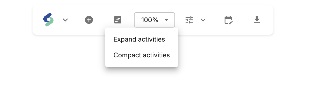 Display density option allows you to adjust the vertical spacing of activities on the roadmap. You can choose between Comfortable, Compact, and Condensed.