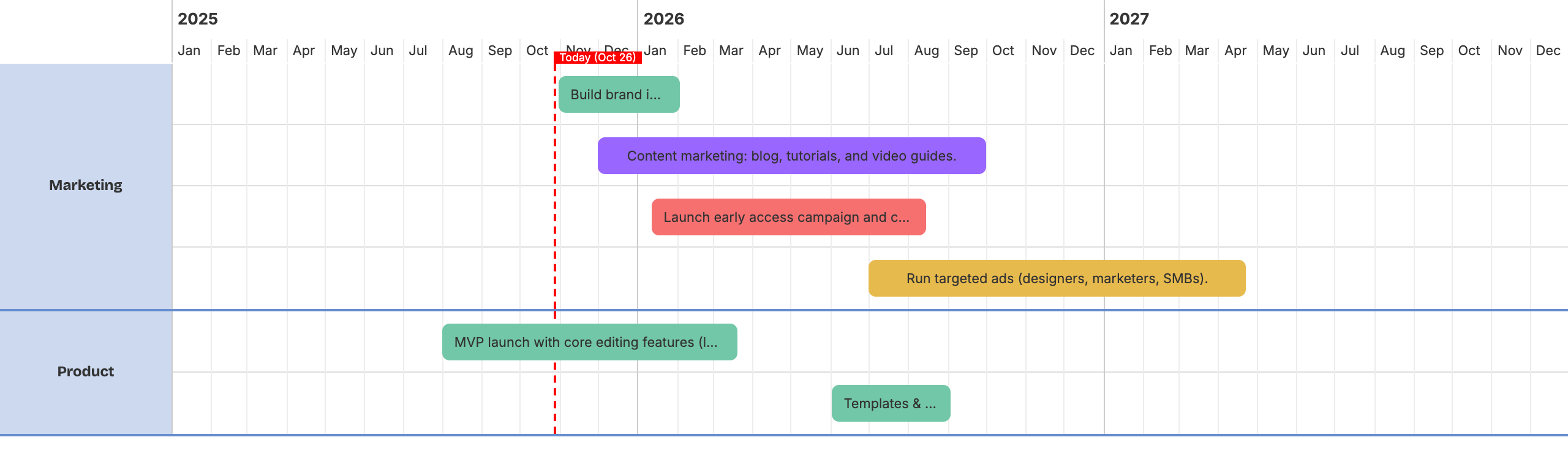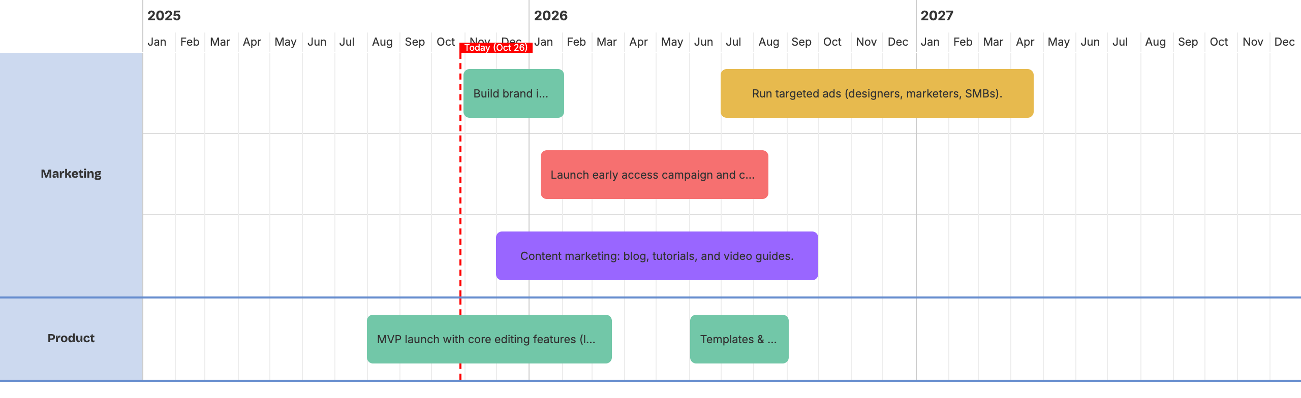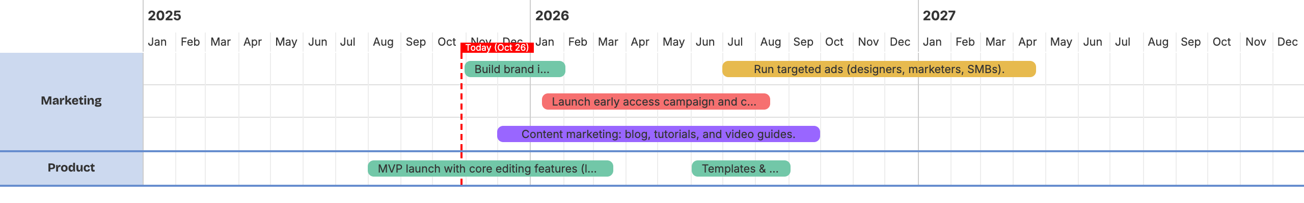 Central part of Shira editor is roadmap itself. Everything you change is immidietly visible.