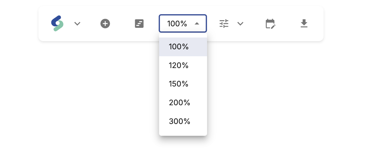 To adjust the zoom level of your roadmap, use the zoom controls located in the toolbar.