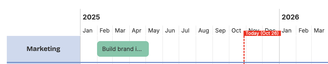 Timescale option allows you to select the time units displayed on the roadmap. You can choose between Months, Quarters, Halfs and Years.